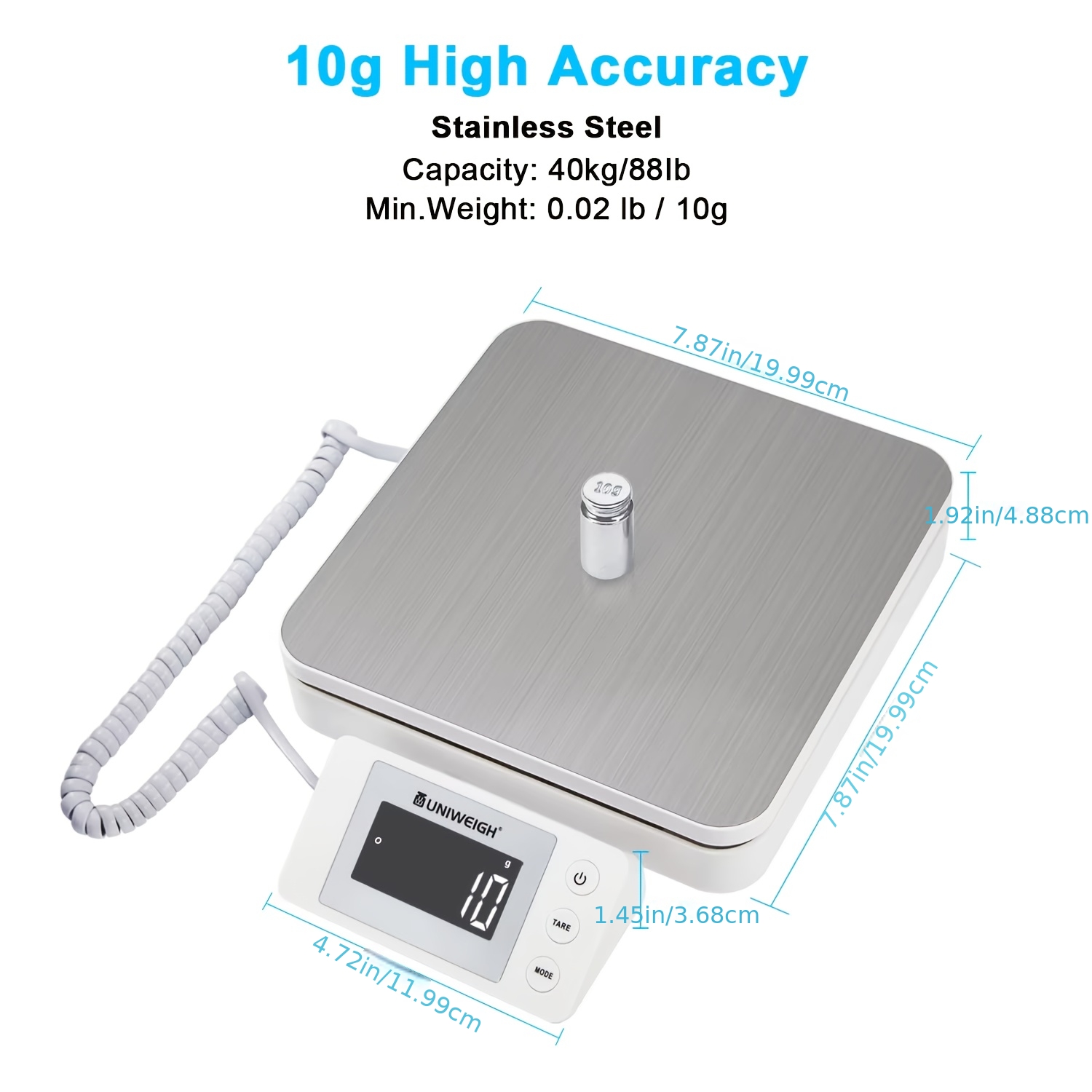• Digital Postal Shipping Scale 40kg/88lb with Tare LCD Display for Small Business Mail Warehouse Luggage Parcel And Personal Use